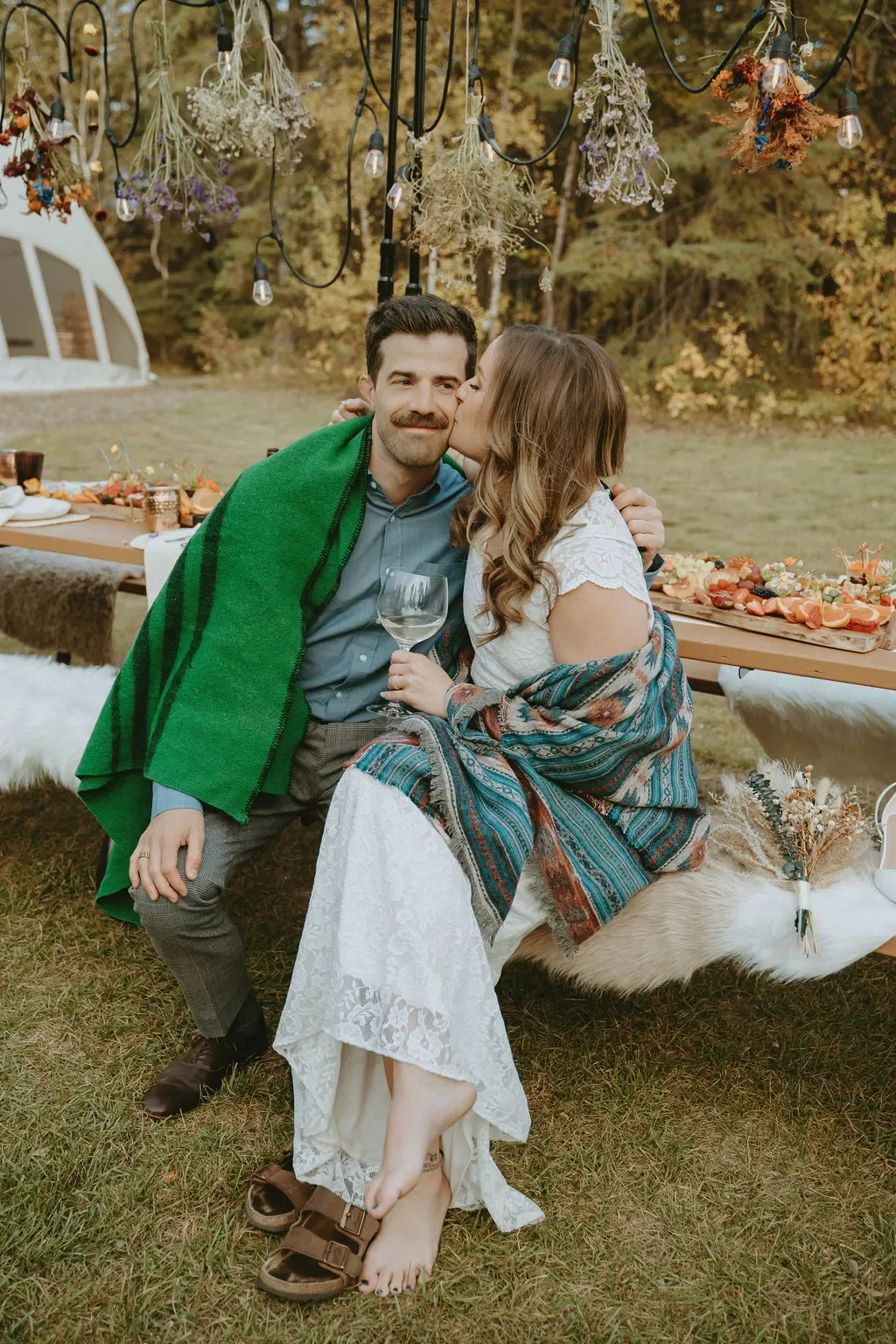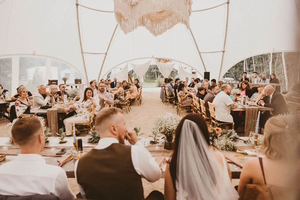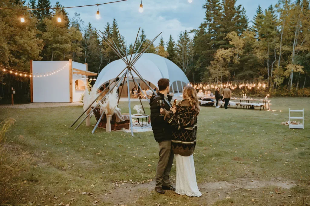 Picture a celebration amidst ancient boreal forests, serenaded by the whispers of the wilderness. For those unpredictable moments, our elegant dome-style tent ensures your special day is perfect, rain or shine.